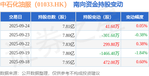 证券之星消息,9月24日南向资金增持41.6万股中石化油服(01033.HK)。近5个交易日中,获南向资金减持的有2天,累计净减持954.6万股。近20个交易日中,获南向资金减持的有12天,累计净减持3466.0万股。截至目前,南向资金持有中石化油服(01033.HK)7.81亿股,占公司已发行普通股的14.43%。