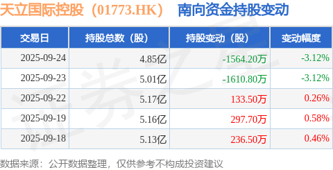 天立国际控股(01773.HK):9月24日南向资金减持1564.2万股