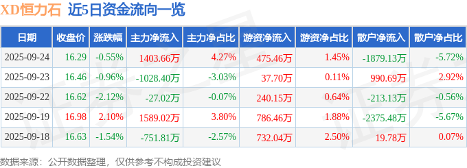 9月24日的资金流向数据方面,主力资金净流入1403.66万元,占总成交额4.27%,游资资金净流入475.46万元,占总成交额1.45%,散户资金净流出1879.13万元,占总成交额5.72%。