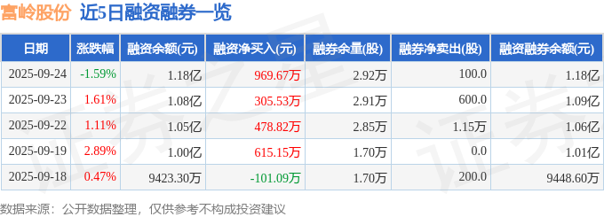 富岭股份融资融券信息显示,融资方面,当日融资买入3086.29万元,融资偿还2116.62万元,融资净买入969.67万元,连续3日净买入累计1754.02万元。融券方面,融券卖出100.0股,融券偿还0.0股,融券余量2.92万股,融券余额45.2万元。融资融券余额1.18亿元。
