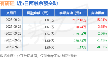 证券之星消息,9月24日,有研硅(688432)融资买入7920.41万元,融资偿还5481.2万元,融资净买入2439.21万元,融资余额1.87亿元。