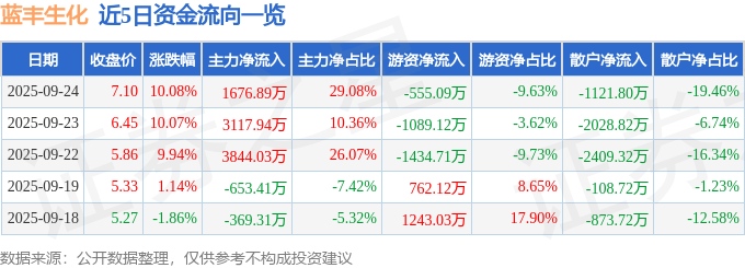 9月24日的资金流向数据方面,主力资金净流入1676.89万元,占总成交额29.08%,游资资金净流出555.09万元,占总成交额9.63%,散户资金净流出1121.8万元,占总成交额19.46%。
