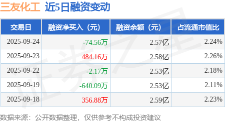 证券之星消息,9月24日,三友化工(600409)融资买入769.22万元,融资偿还843.78万元,融资净卖出74.56万元,融资余额2.57亿元,近20个交易日中有11个交易日出现融资净买入。