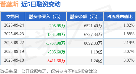 证券之星消息,9月24日,普蕊斯(301257)融资买入554.97万元,融资偿还760.91万元,融资净卖出205.95万元,融资余额6521.4万元。