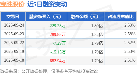 证券之星消息,9月24日,宝胜股份(600973)融资买入917.06万元,融资偿还1146.29万元,融资净卖出229.23万元,融资余额1.8亿元。