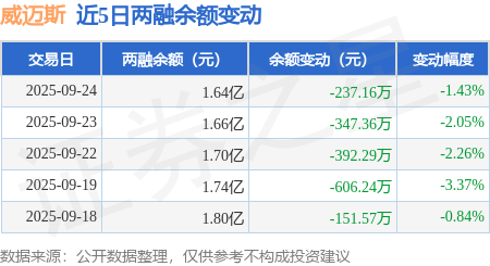 证券之星消息,9月24日,威迈斯(688612)融资买入1096.77万元,融资偿还1332.86万元,融资净卖出236.08万元,融资余额1.63亿元。