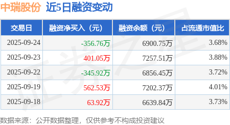 证券之星消息,9月24日,中瑞股份(301587)融资买入1664.47万元,融资偿还2021.23万元,融资净卖出356.76万元,融资余额6900.75万元,近20个交易日中有11个交易日出现融资净买入。