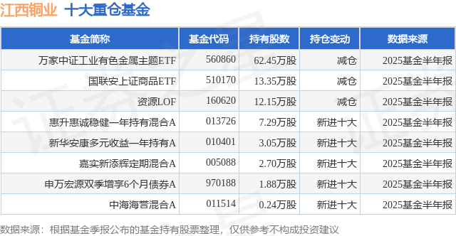重仓江西铜业的公募基金请见下表:
