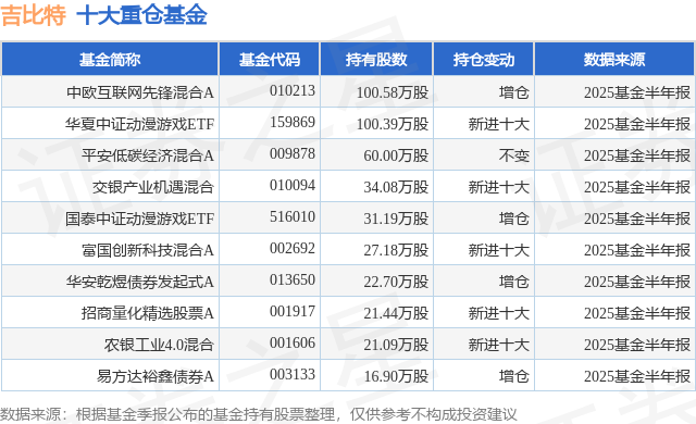 根据2025基金半年报公募基金重仓股数据,重仓该股的公募基金共73家,其中持有数量最多的公募基金为中欧基金的中欧互联网先锋混合A。中欧互联网先锋混合A目前规模为37.67亿元,最新净值1.1577(9月24日),较上一交易日上涨2.86%,近一年上涨94.64%。该公募基金现任基金经理为王颖。王颖在任的基金产品包括:中欧锐意成长混合发起A,管理时间为2023年9月19日至今,期间收益率为33.6%。