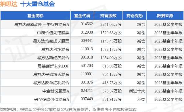根据2025基金半年报公募基金重仓股数据,重仓该股的公募基金共15家,其中持有数量最多的公募基金为易方达基金的易方达品质动能三年持有混合A。易方达品质动能三年持有混合A目前规模为78.37亿元,最新净值1.3294(9月24日),较上一交易日上涨0.45%,近一年上涨83.75%。该公募基金现任基金经理为陈皓。陈皓在任的基金产品包括:易方达平稳增长混合,管理时间为2012年9月28日至今,期间收益率为466.45%;易方达科翔混合,管理时间为2014年5月10日至今,期间收益率为656.94%;易方达新经济混合,管理时间为2015年2月12日至今,期间收益率为408.2%;易方达均衡成长股票,管理时间为2020年5月22日至今,期间收益率为44.51%。