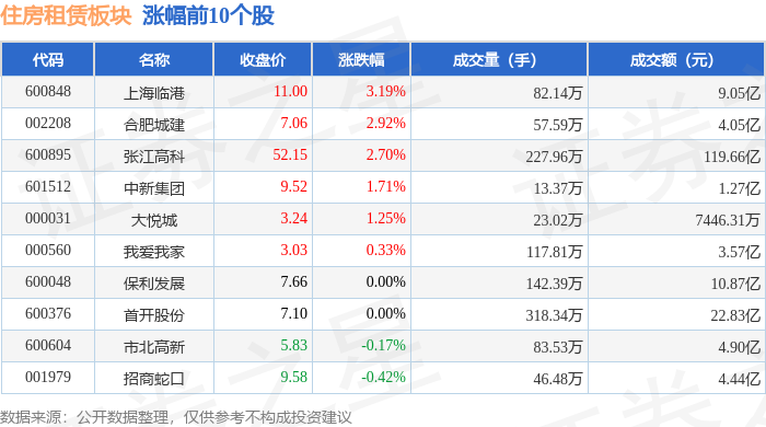 证券之星消息,9月25日住房租赁板块较上一交易日上涨0.06%,上海临港领涨。当日上证指数报收于3853.3,下跌0.01%。深证成指报收于13445.9,上涨0.67%。住房租赁板块个股涨跌见下表: