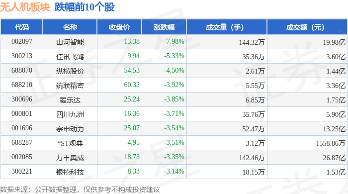 从资金流向上来看,当日无人机板块主力资金净流出18.94亿元,游资资金净流入1.82亿元,散户资金净流入17.13亿元。无人机板块个股资金流向见下表: