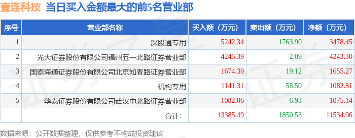 证券之星消息,沪深交易所2025年9月25日公布的交易公开信息显示,壹连科技(301631)因日换手率达到30%的前5只证券登上龙虎榜。此次是近5个交易日内第1次上榜。