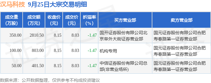 证券之星消息,9月25日汉马科技发生大宗交易,交易数据如下: