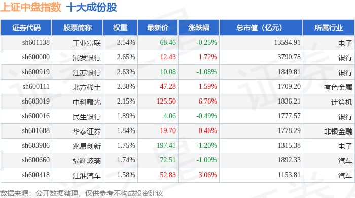 证券之星消息,9月25日,上证中盘(000044)指数报收于4528.83点,涨0.1%,成交1620.73亿元,换手率0.78%。当日该指数成份股中,上涨的有45家,华勤技术以6.8%的涨幅领涨,下跌的有81家,山东黄金以4.75%的跌幅领跌。