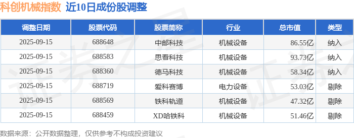 近10日内科创机械(000693)指数成份股做了调整,新纳入了3只股票,剔除了3只股票。