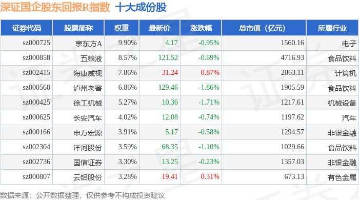 深证国企股东回报R(470064)指数十大成份股详情如下: