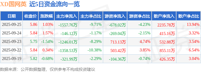 证券之星消息,截至2025年9月25日收盘,XD国网英(600517)报收于5.86元,上涨1.03%,换手率0.48%,成交量27.34万手,成交额1.6亿元。