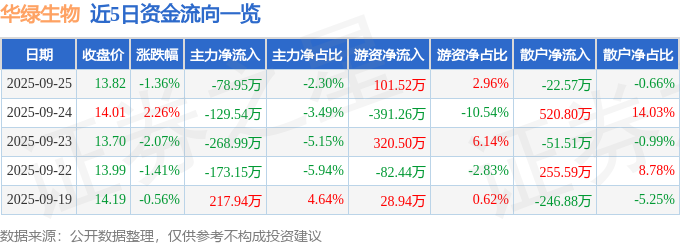 证券之星消息,截至2025年9月25日收盘,华绿生物(300970)报收于13.82元,下跌1.36%,换手率2.61%,成交量2.46万手,成交额3430.34万元。