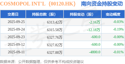证券之星消息,9月25日南向资金减持2.16万股COSMOPOL INT'L(00120.HK)。近5个交易日中,获南向资金减持的有5天,累计净减持14.94万股。近20个交易日中,获南向资金减持的有20天,累计净减持76.68万股。截至目前,南向资金持有COSMOPOL INT'L(00120.HK)6313.42万股,占公司已发行普通股的4.7%。