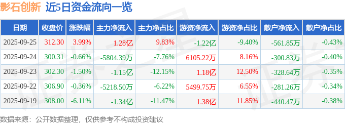9月25日的资金流向数据方面,主力资金净流入1.28亿元,占总成交额9.83%,游资资金净流出1.22亿元,占总成交额9.4%,散户资金净流出561.85万元,占总成交额0.43%。