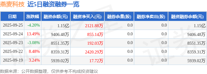 燕麦科技融资融券信息显示,融资方面,当日融资买入5200.13万元,融资偿还3078.26万元,融资净买入2121.88万元,连续3日净买入累计3169.05万元。融券方面,融券卖出0.0股,融券偿还0.0股,融券余量0.0股,融券余额0.0万元。融资融券余额1.15亿元。