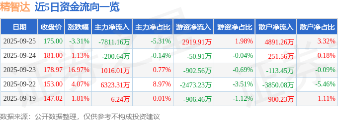 证券之星消息,截至2025年9月25日收盘,精智达(688627)报收于175.0元,下跌3.31%,换手率11.08%,成交量8.02万手,成交额14.72亿元。