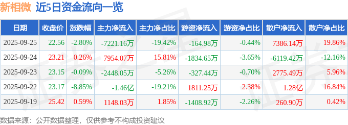 证券之星消息,截至2025年9月25日收盘,新相微(688593)报收于22.56元,下跌2.8%,换手率5.07%,成交量16.35万手,成交额3.72亿元。