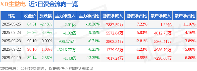 9月25日的资金流向数据方面,主力资金净流出2.01亿元,占总成交额18.38%,游资资金净流入7887.59万元,占总成交额7.22%,散户资金净流入1.22亿元,占总成交额11.16%。