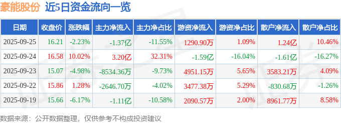 证券之星消息,截至2025年9月25日收盘,豪能股份(603809)报收于16.21元,下跌2.23%,换手率8.34%,成交量71.75万手,成交额11.85亿元。