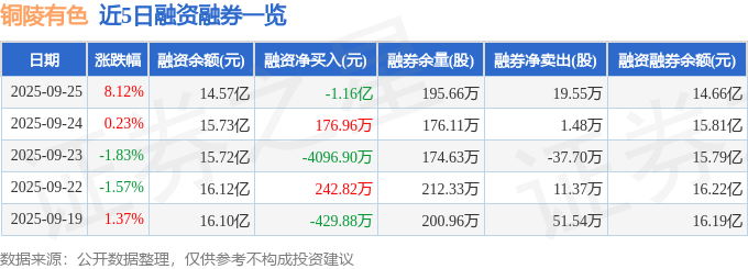 铜陵有色融资融券信息显示,融资方面,当日融资买入3.29亿元,融资偿还4.45亿元,融资净偿还1.16亿元。融券方面,融券卖出40.3万股,融券偿还20.75万股,融券余量195.66万股,融券余额911.78万元。融资融券余额14.66亿元。