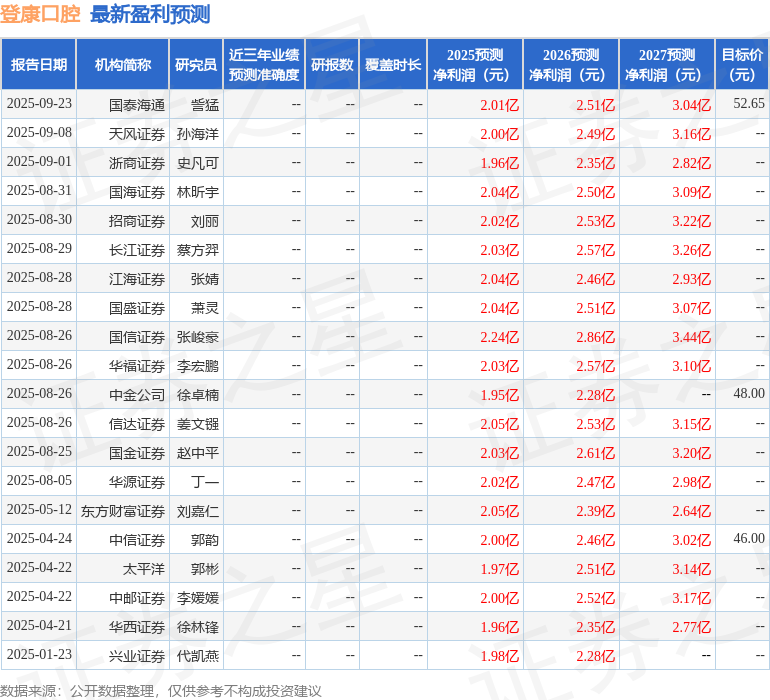 登康口腔2025年中报显示,公司主营收入8.42亿元,同比上升19.72%;归母净利润8515.53万元,同比上升17.59%;扣非净利润6937.82万元,同比上升25.67%;其中2025年第二季度,公司单季度主营收入4.11亿元,同比上升20.11%;单季度归母净利润4200.27万元,同比上升19.66%;单季度扣非净利润3356.28万元,同比上升24.02%;负债率25.68%,投资收益906.26万元,财务费用-555.0万元,毛利率52.61%。