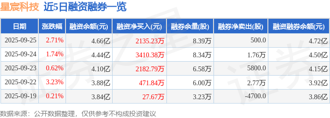 星宸科技融资融券信息显示,融资方面,当日融资买入1.27亿元,融资偿还1.06亿元,融资净买入2135.23万元,连续3日净买入累计7728.4万元。融券方面,融券卖出1400.0股,融券偿还900.0股,融券余量8.39万股,融券余额572.87万元。融资融券余额4.72亿元。