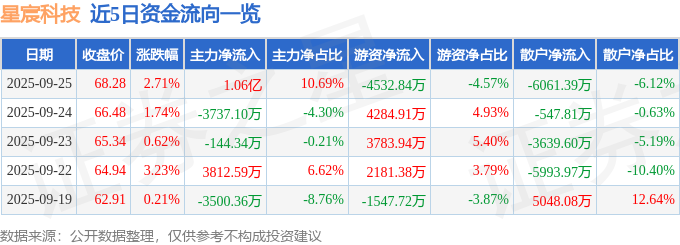证券之星消息,截至2025年9月25日收盘,星宸科技(301536)报收于68.28元,上涨2.71%,换手率7.87%,成交量14.74万手,成交额9.91亿元。