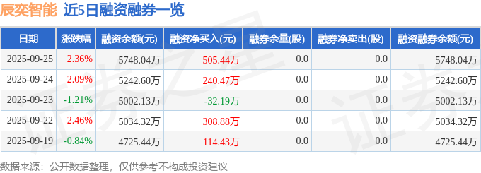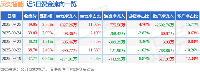 证券之星消息,截至2025年9月25日收盘,辰奕智能(301578)报收于39.95元,上涨2.36%,换手率17.89%,成交量4.15万手,成交额1.65亿元。