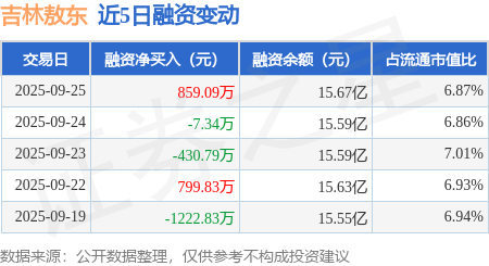 证券之星消息,9月25日,吉林敖东(000623)融资买入6718.84万元,融资偿还5859.76万元,融资净买入859.09万元,融资余额15.67亿元。
