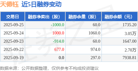 证券之星消息,9月25日,天德钰(688252)融资买入3102.16万元,融资偿还2708.69万元,融资净买入393.47万元,融资余额2.87亿元。