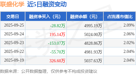 证券之星消息,9月25日,联盛化学(301212)融资买入185.23万元,融资偿还214.05万元,融资净卖出28.82万元,融资余额4995.19万元。