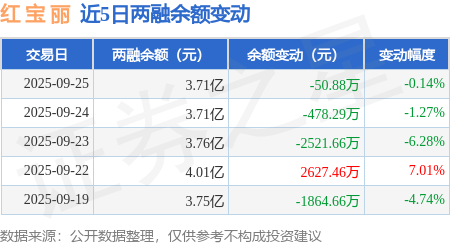 证券之星消息,9月25日,红 宝 丽(002165)融资买入2584.32万元,融资偿还2635.2万元,融资净卖出50.88万元,融资余额3.71亿元。