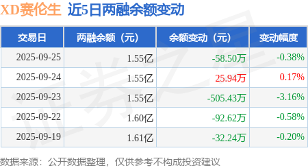 证券之星消息,9月25日,XD赛伦生(688163)融资买入149.58万元,融资偿还208.08万元,融资净卖出58.5万元,融资余额1.55亿元。
