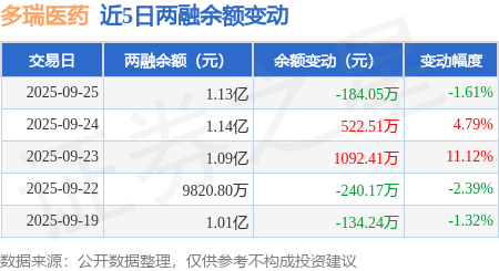 证券之星消息,9月25日,多瑞医药(301075)融资买入267.94万元,融资偿还451.99万元,融资净卖出184.05万元,融资余额1.13亿元。