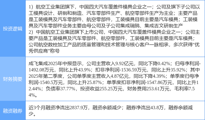 证券之星消息,成飞集成9月26日涨停收盘,收盘价42.88元。该股于10点41分涨停,5次打开涨停,截止收盘封单资金为6123.56万元,占其流通市值0.4%。