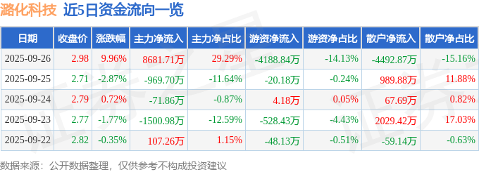 9月26日的资金流向数据方面,主力资金净流入8681.71万元,占总成交额29.29%,游资资金净流出4188.84万元,占总成交额14.13%,散户资金净流出4492.87万元,占总成交额15.16%。