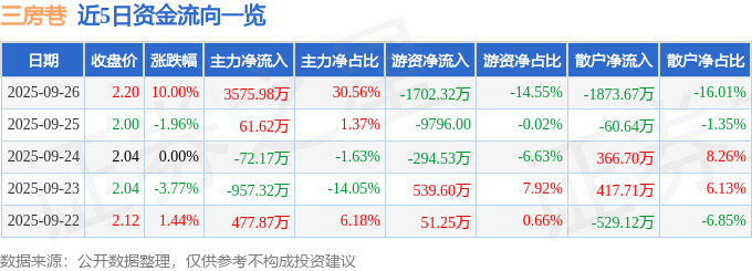 证券之星消息,三房巷9月26日涨停收盘,收盘价2.2元。该股于9点52分涨停,未打开涨停,截止收盘封单资金为2597.17万元,占其流通市值0.3%。