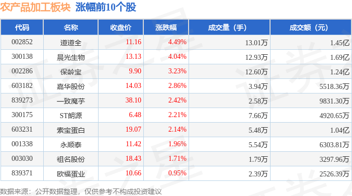 从资金流向上来看,当日农产品加工板块主力资金净流出1.44亿元,游资资金净流入5874.08万元,散户资金净流入8504.84万元。农产品加工板块个股资金流向见下表: