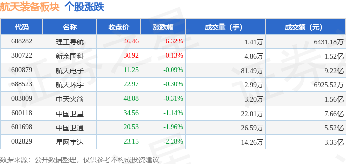 证券之星消息,9月26日航天装备板块较上一交易日下跌1.09%,星网宇达领跌。当日上证指数报收于3828.11,下跌0.65%。深证成指报收于13209.0,下跌1.76%。航天装备板块个股涨跌见下表: