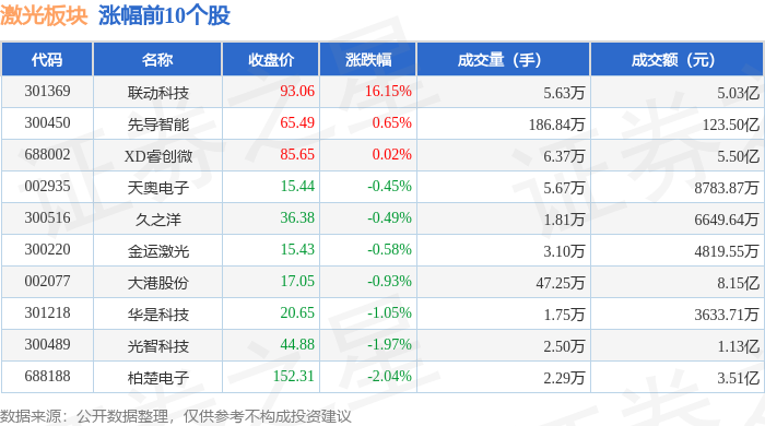 从资金流向上来看,当日激光板块主力资金净流出39.25亿元,游资资金净流入11.7亿元,散户资金净流入27.55亿元。激光板块个股资金流向见下表: