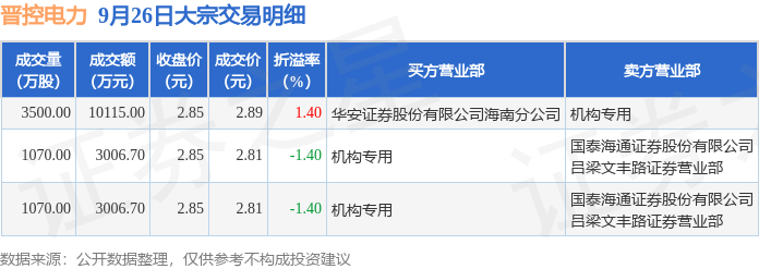 证券之星消息,9月26日晋控电力发生大宗交易,交易数据如下: