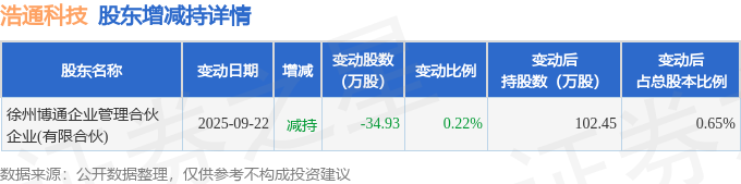 截至2025年9月26日收盘,浩通科技(301026)报收于28.91元,上涨1.58%,换手率3.97%,成交量4.43万手,成交额1.3亿元。