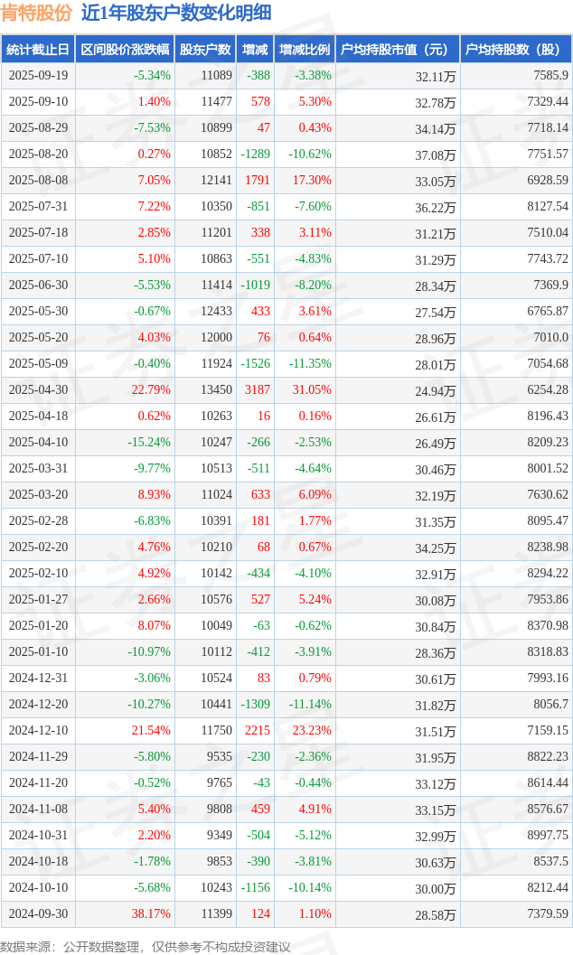 从股价来看,2025年9月10日至2025年9月19日,肯特股份区间跌幅为5.34%,在此期间股东户数减少388.0户,减幅为3.38%。